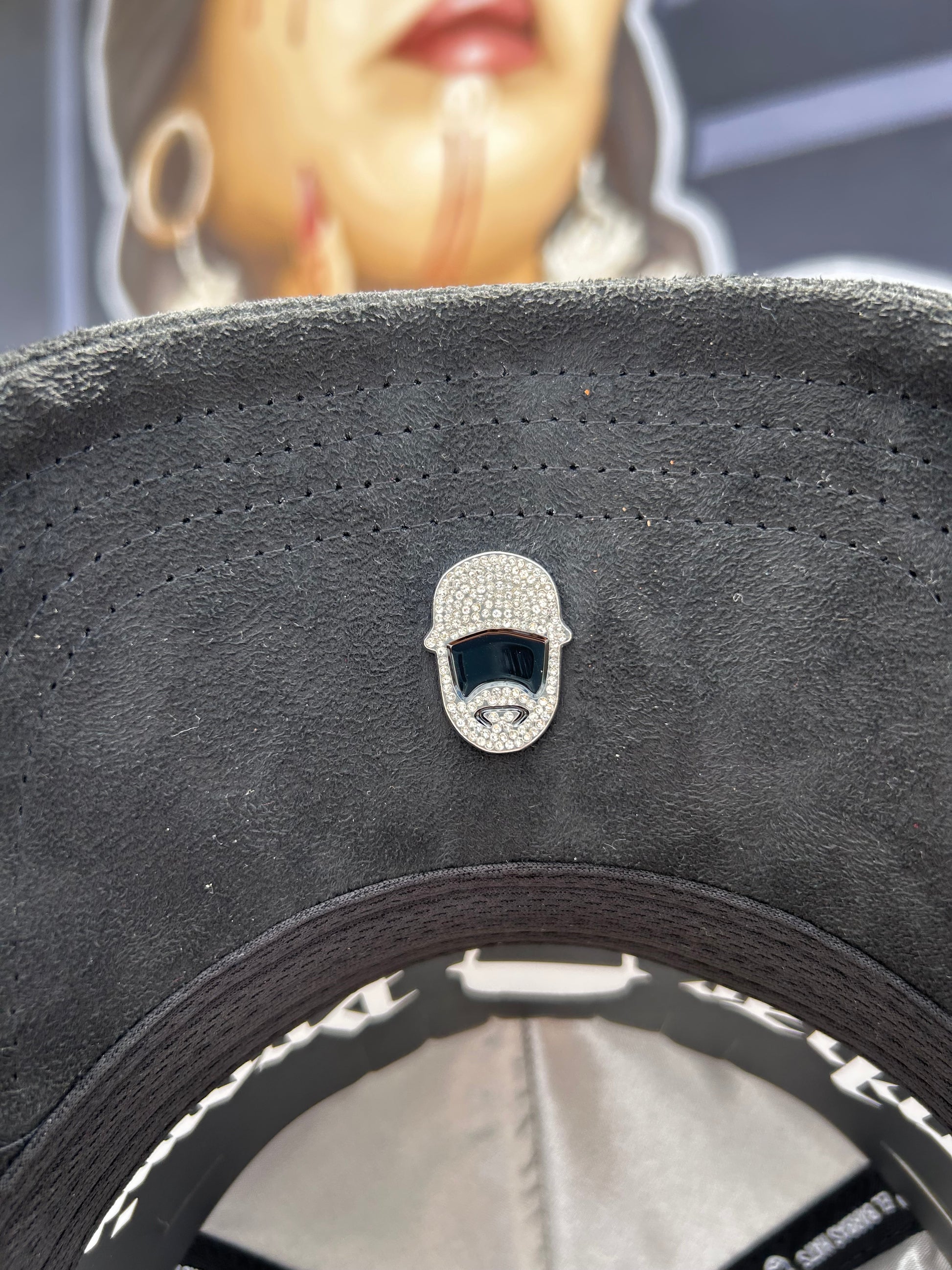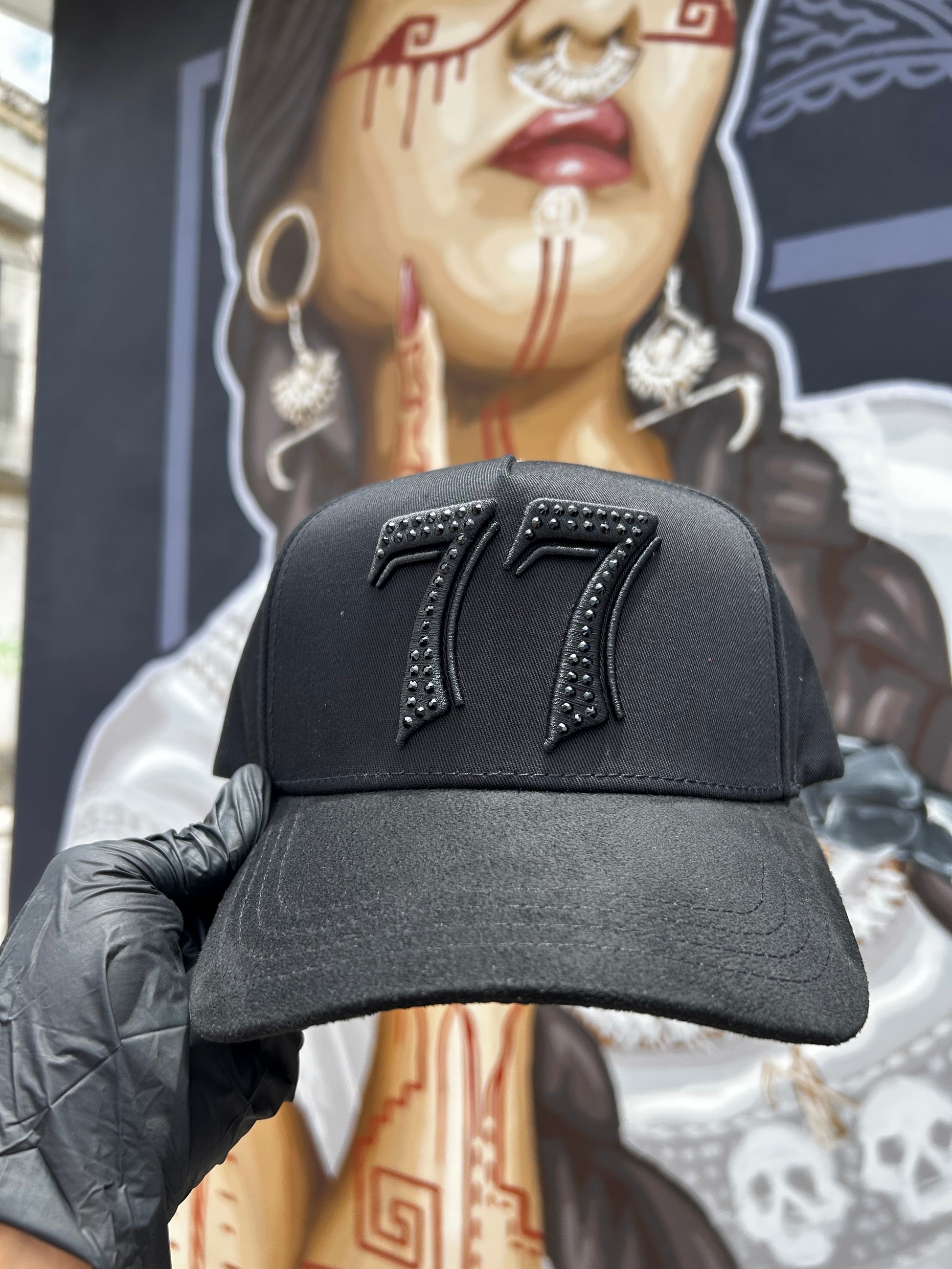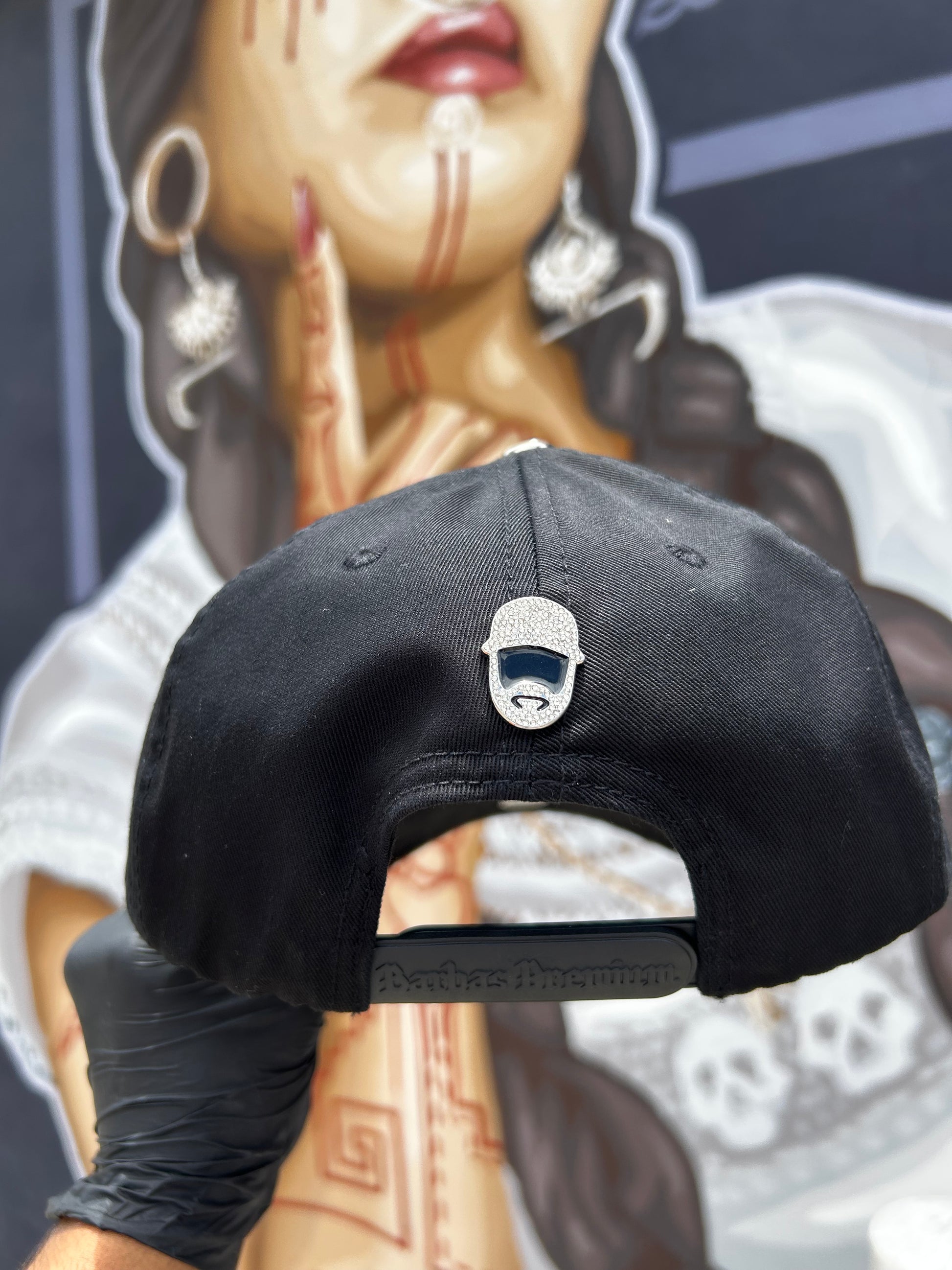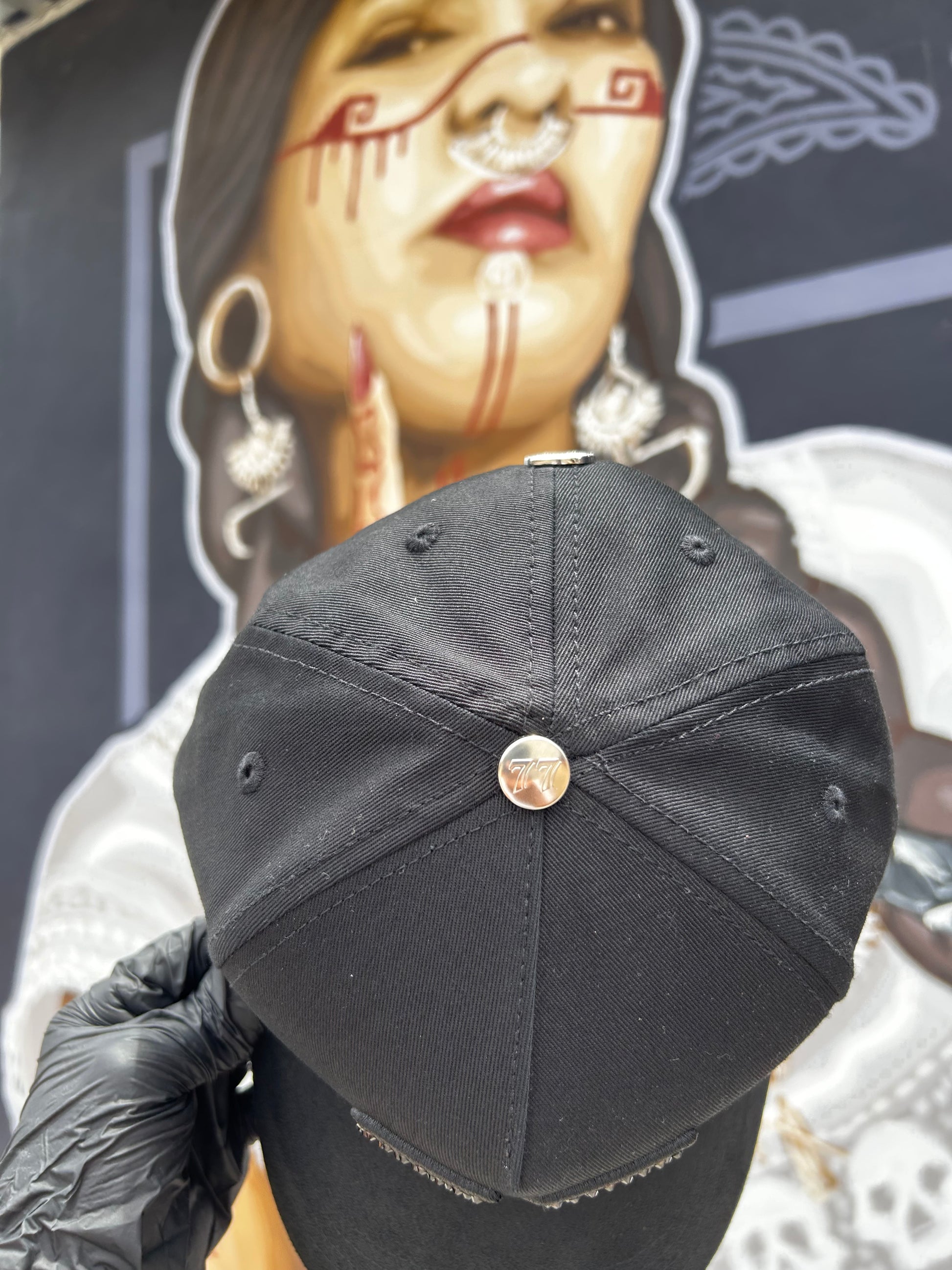 Una gorra negra elegante y única, con cristales incrustados en el frente, la parte trasera y bajo la visera, destacando el icónico logo de Barbas Hats. Perfecta para quienes buscan un estilo que brille con personalidad. ¡Hazla tuya y roba miradas donde vayas!
