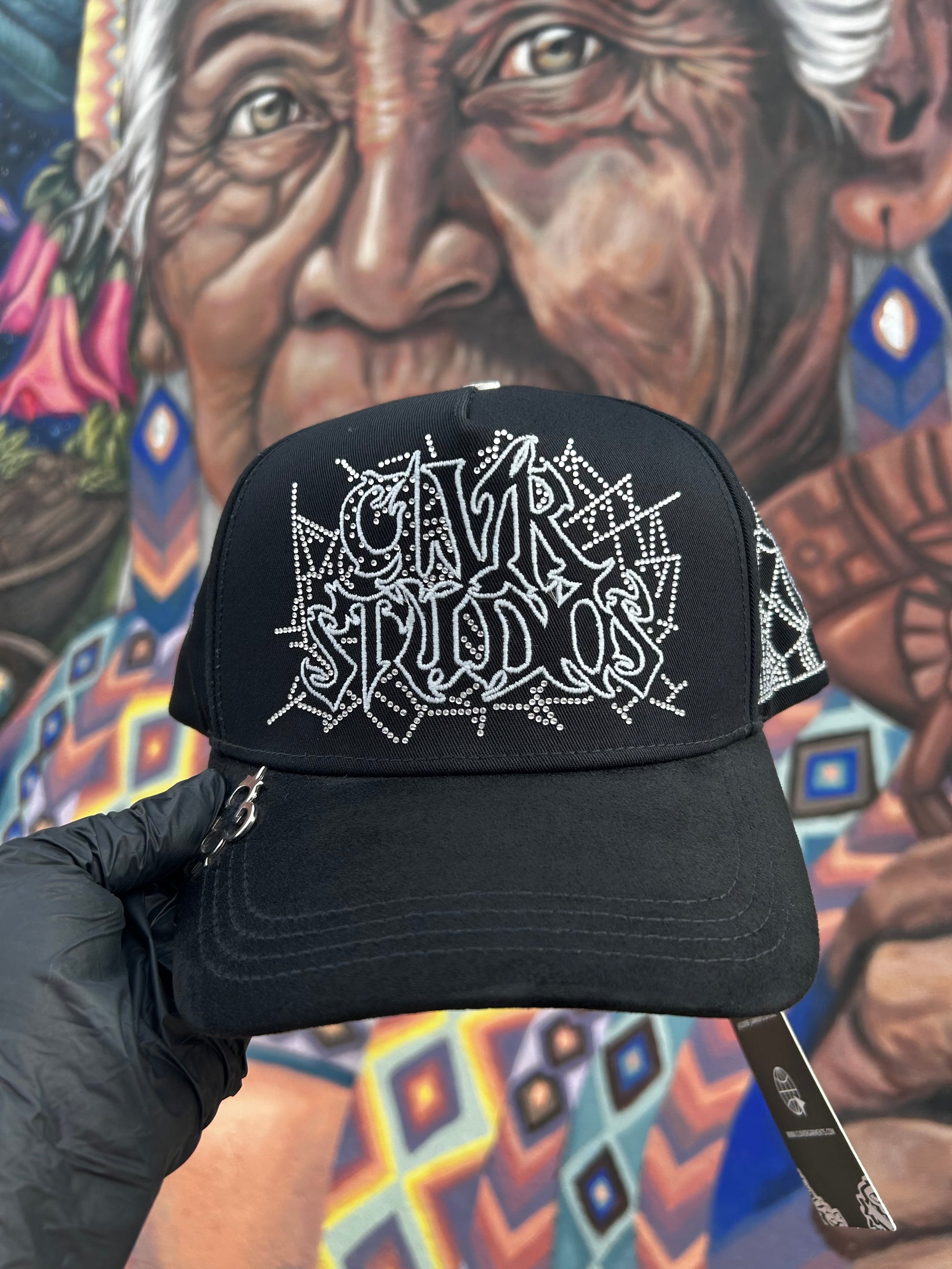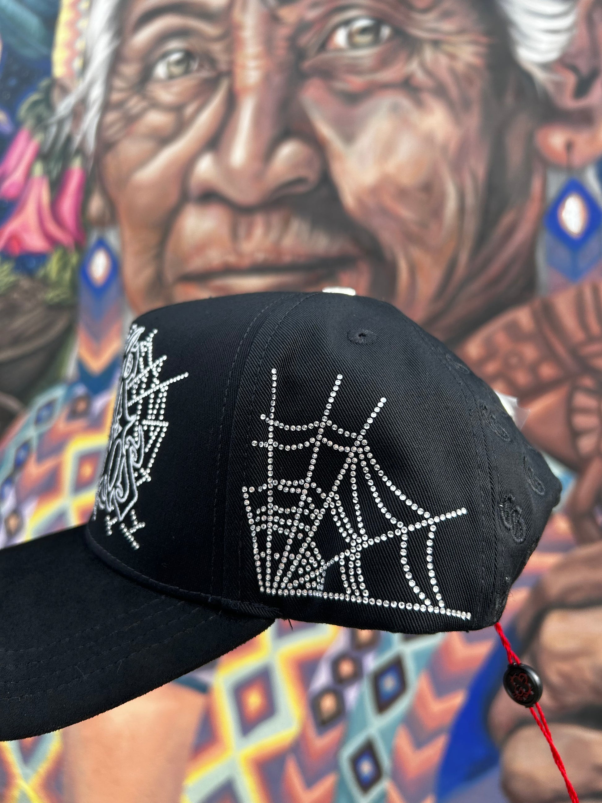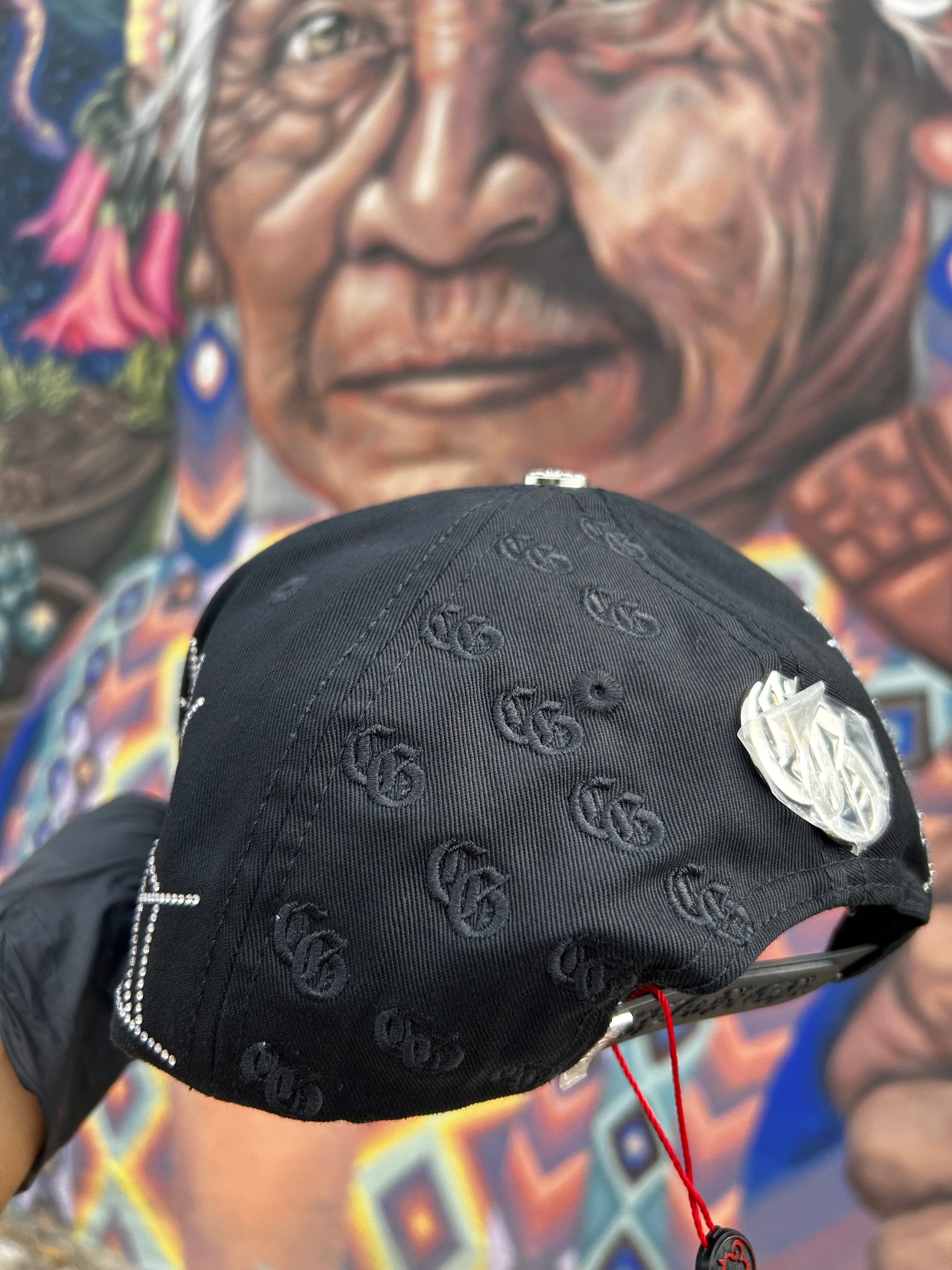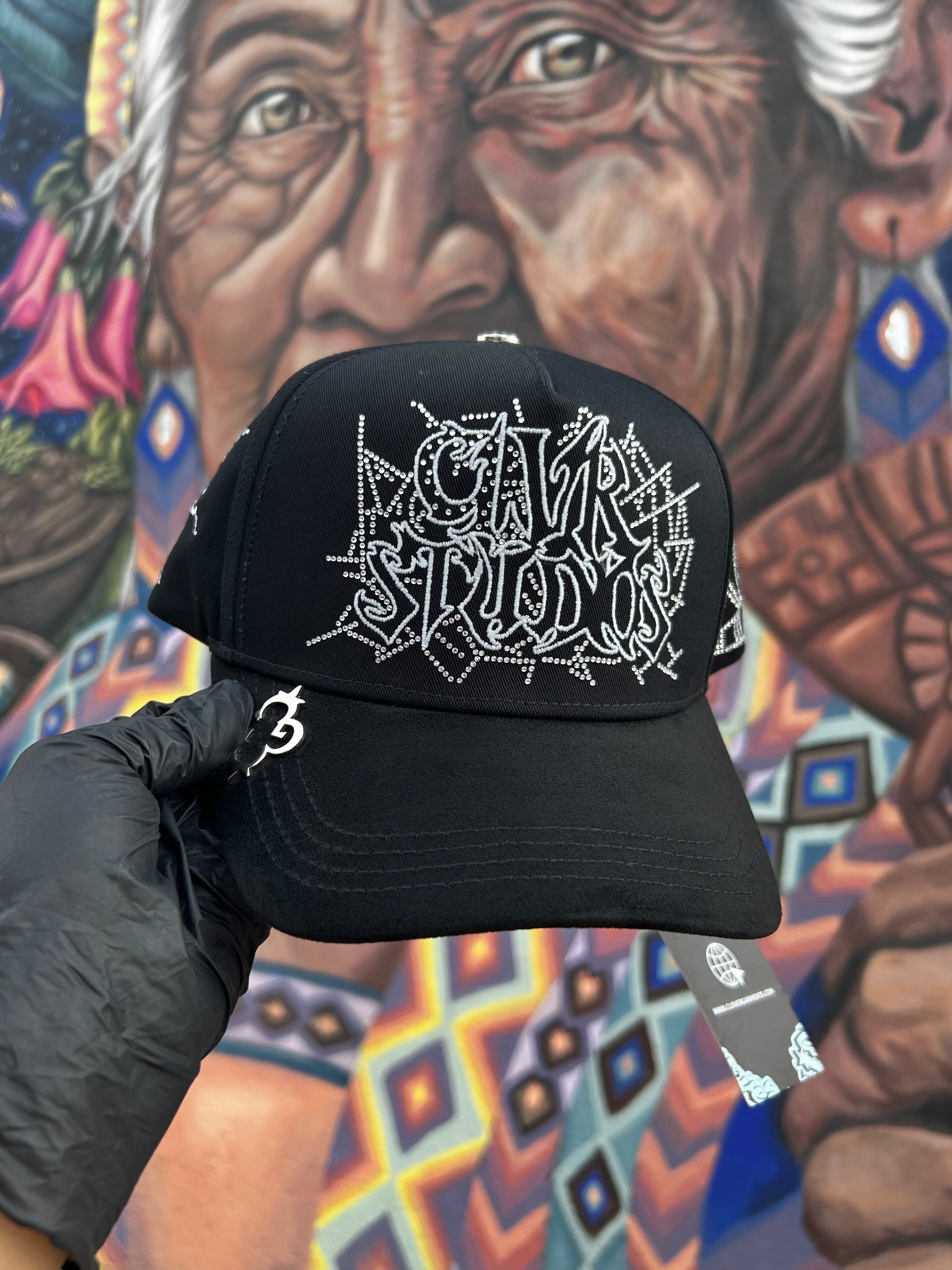 Un modelo exclusivo y fuera de lo común. Esta gorra completamente negra destaca por su diseño elegante y atrevido, con cristales incrustados que le aportan un brillo sutil pero impactante. Un accesorio único que eleva tu estilo y no pasa desapercibido.