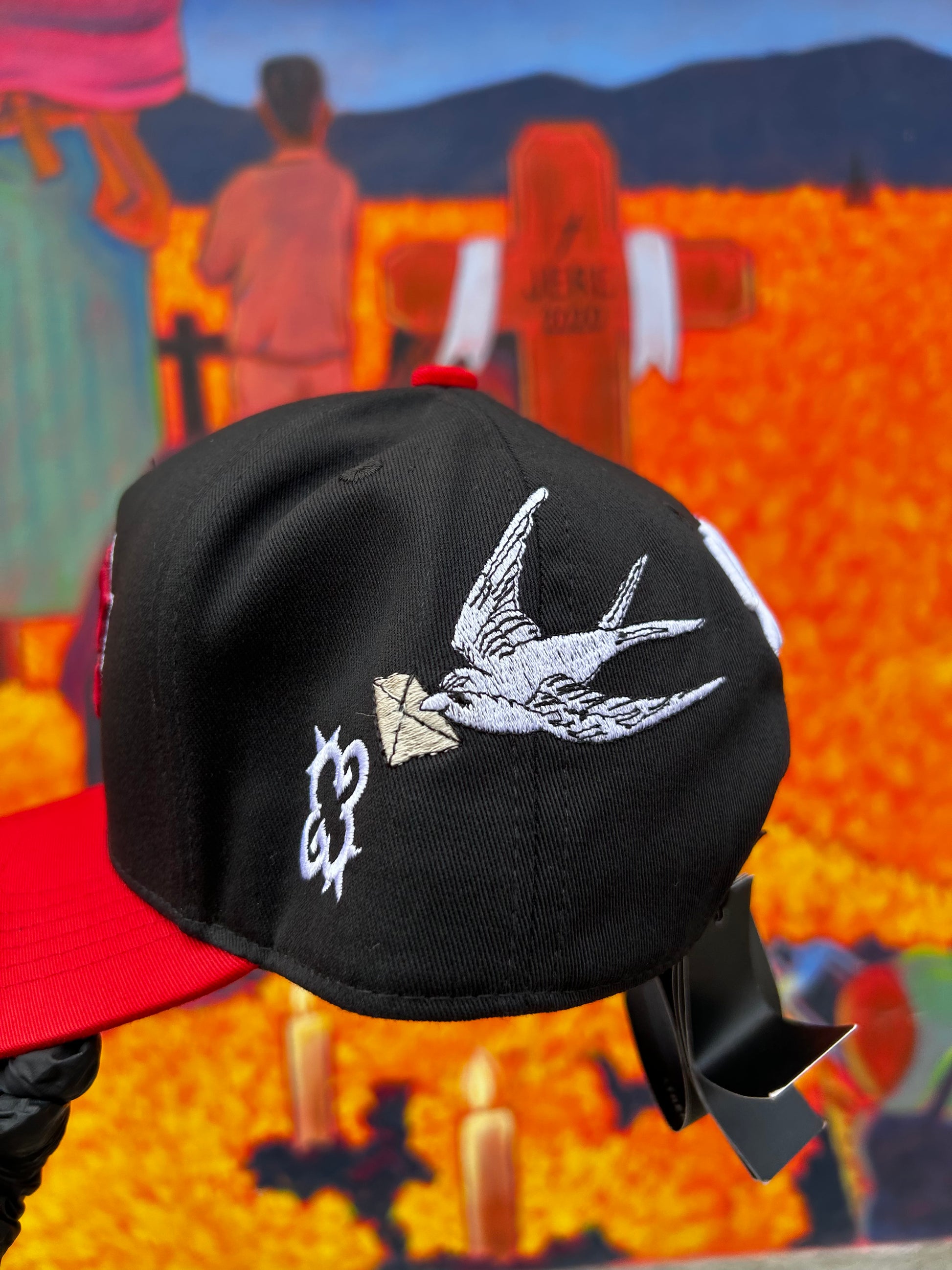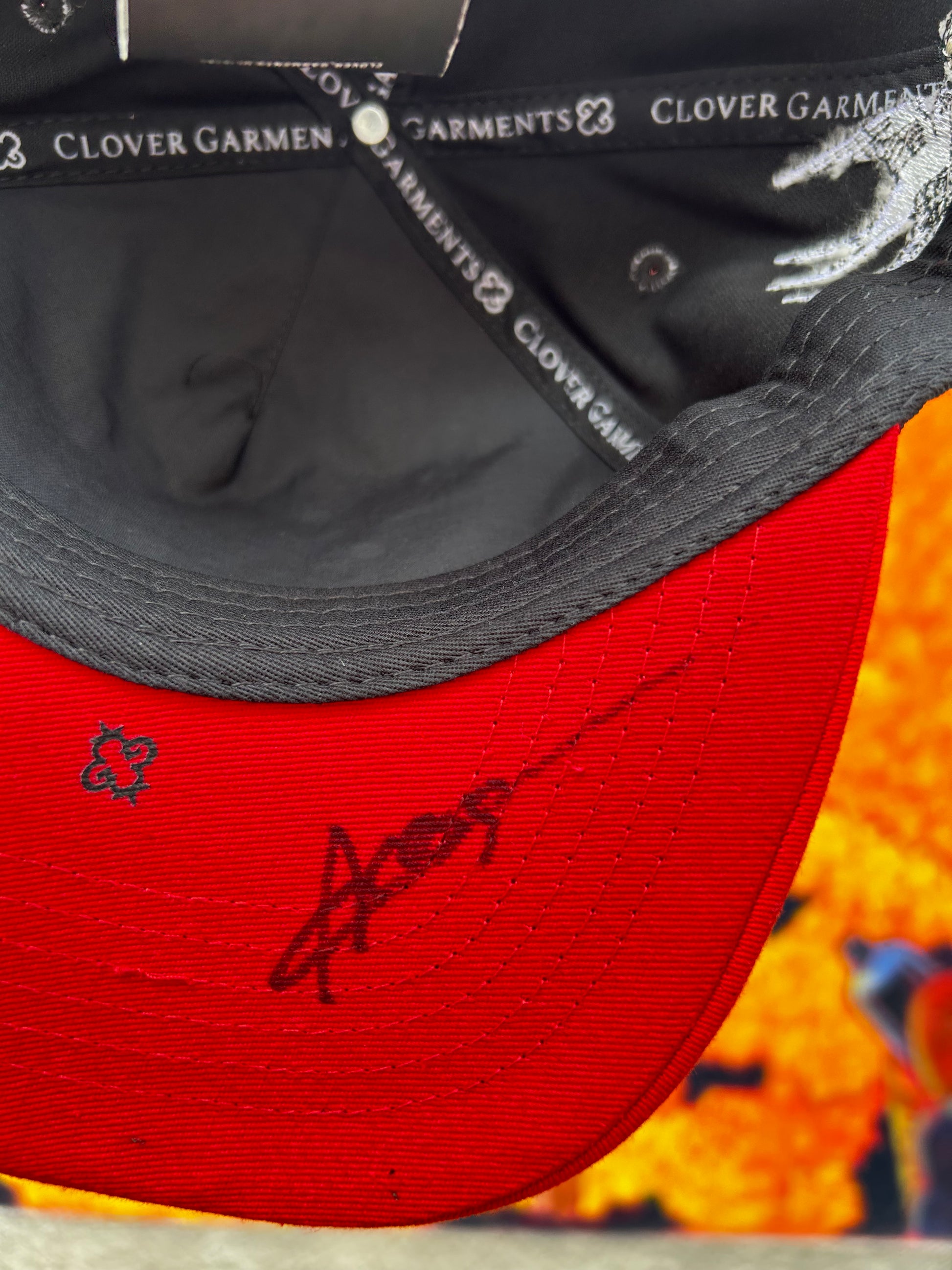 Les presentamos esta colaboración única entre Clover Garments y Diego Coss: una gorra verdaderamente exclusiva, firmada por el propio artista. Su diseño combina de forma impecable los colores negro y rojo, inspirado en la figura de Cupido, con un estilo audaz, moderno y lleno de actitud.